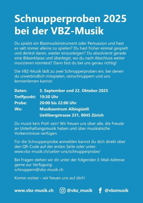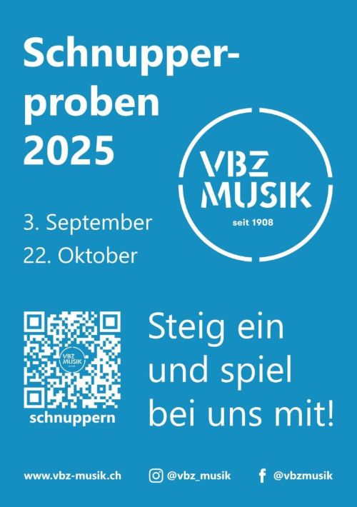 Am 22.10.2025 führen wir für alle interessierten eine öffentliche Schnupperprobe durch. Alle interessierten Musiker*innen sind herzlich willkommen.